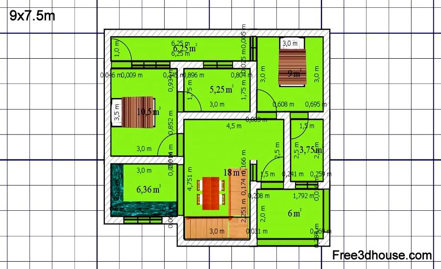 Free Download 9x7.5m House Plan With American Kitchen | 9x7.5m House Design with Bedroom | 67sqm House plan | 29*24 feet ghar ka naksha | 9x7.5m House Plan 3d