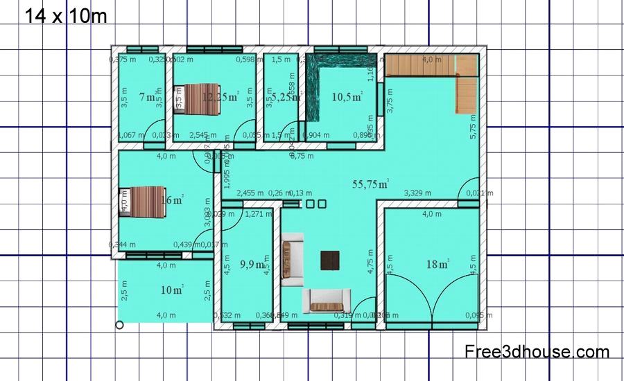 14 x 10 Meter Free Download House Plan | Free Plan 14 x 10 Meter House Plan, 2 Bedroom With Car Parking