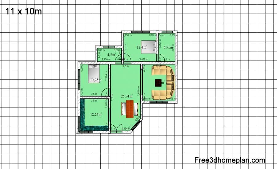 11 X 10 M SMALL HOUSE DESIGN Free Download Small House Plan | 11 X 10 3 Bedroom House